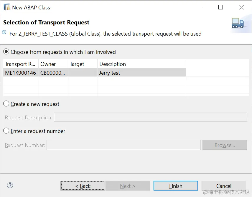 指定把这个类存储到刚刚新建的Transport Request里: