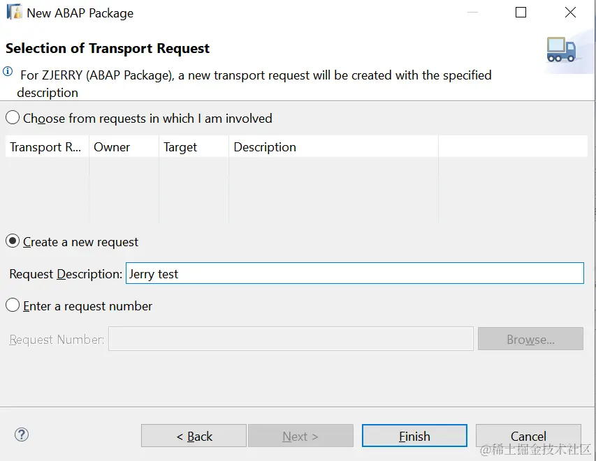 然后弹出提示要求创建Transport Request(传输请求):