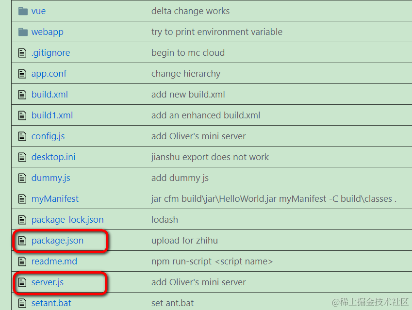 在这个项目的根目录即webapp文件夹的外层,多了两个文件:server.js和package.json, 分别是nodejs应用的入口文件和项目描述文件。