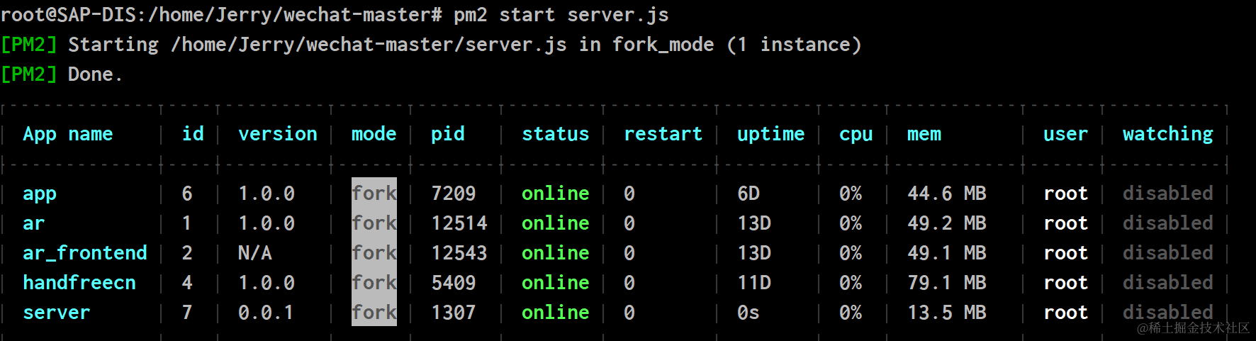 如果想以守护进程的方式启动server, 也可以用pm2, 一个开源的nodejs进程管理工具。