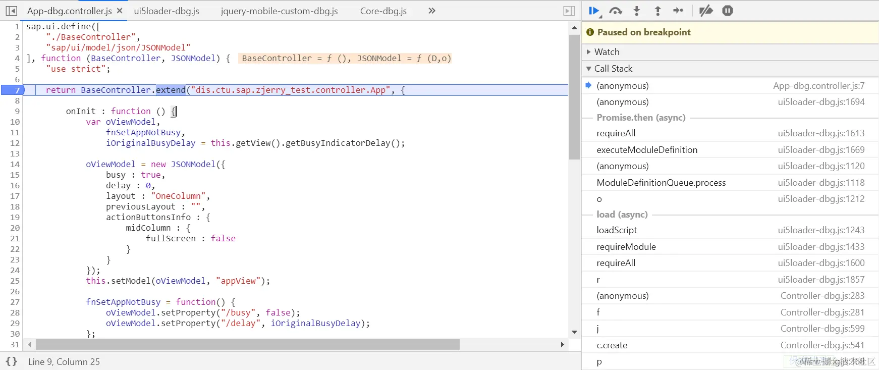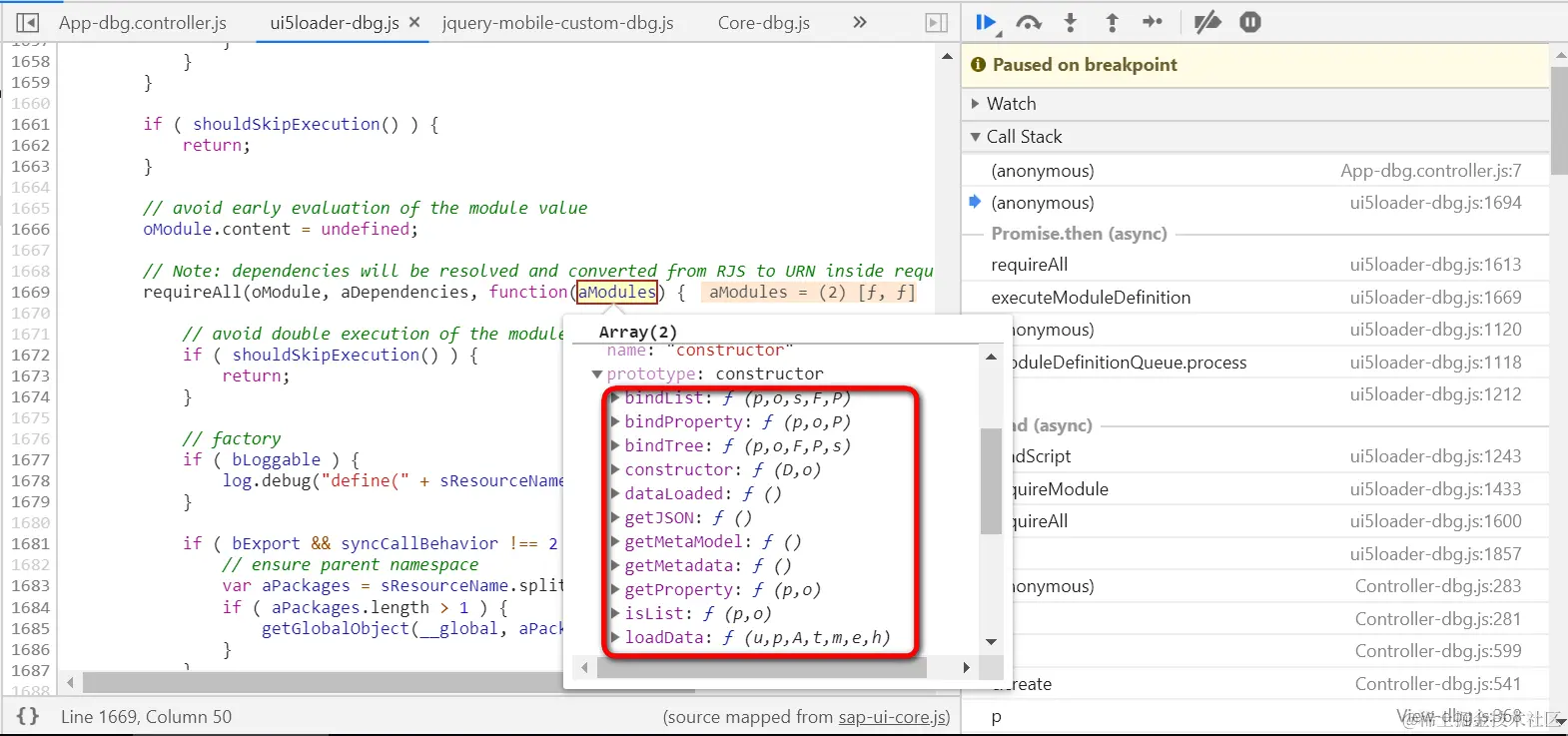 而aModules数组里的两个对象,就是BaseController和JSONModel模块加载后的实例: