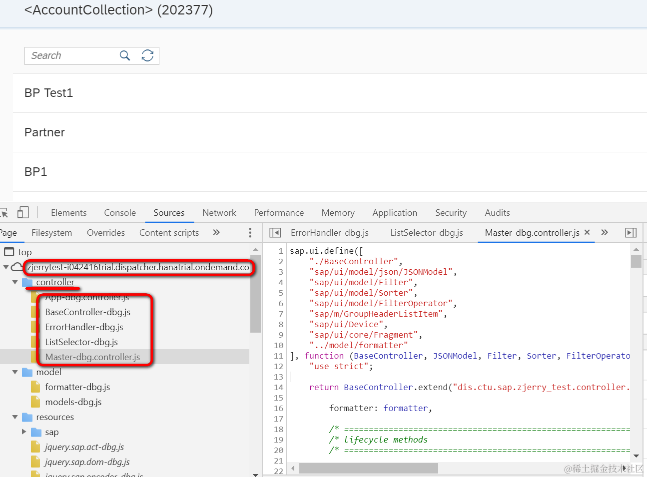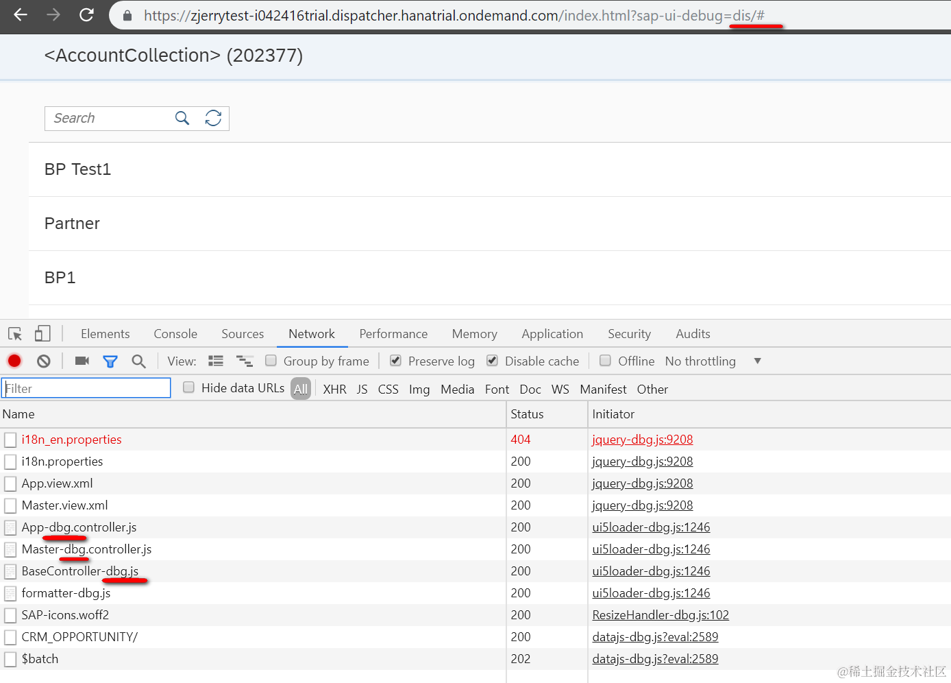 此时浏览器地址栏里看到的参数为sap-ui-debug=dis/#, 意思是仅仅disnamespace下的所有资源加载成调试版本: