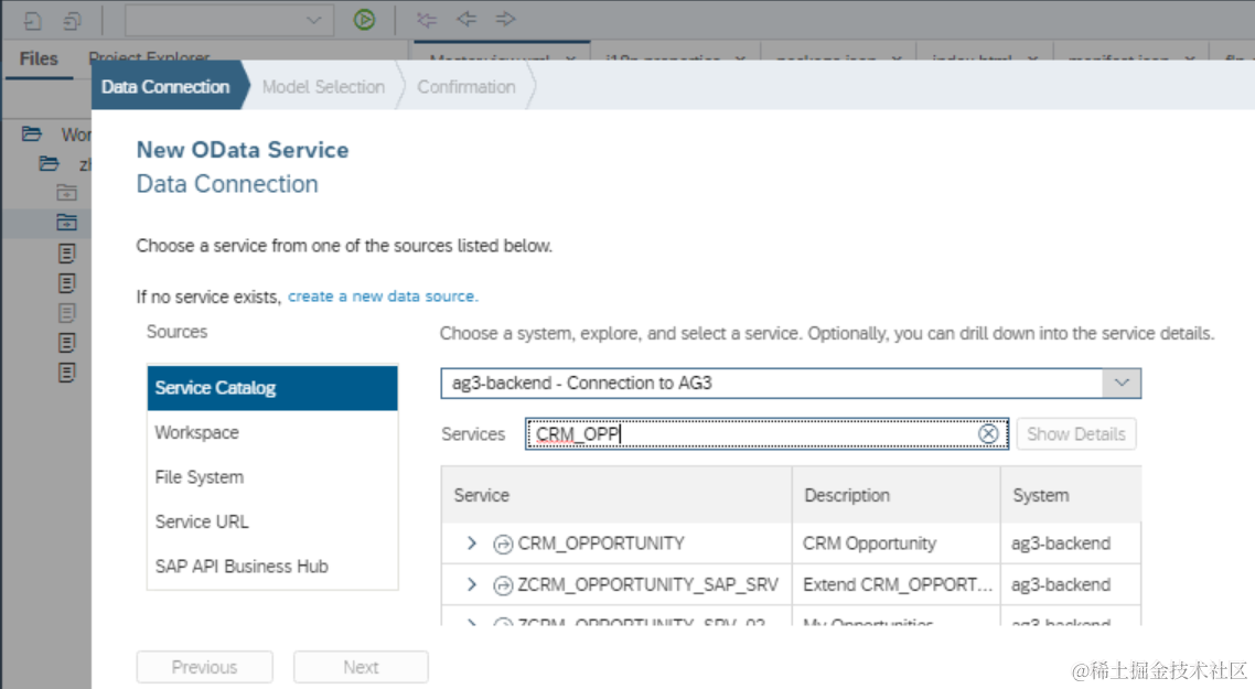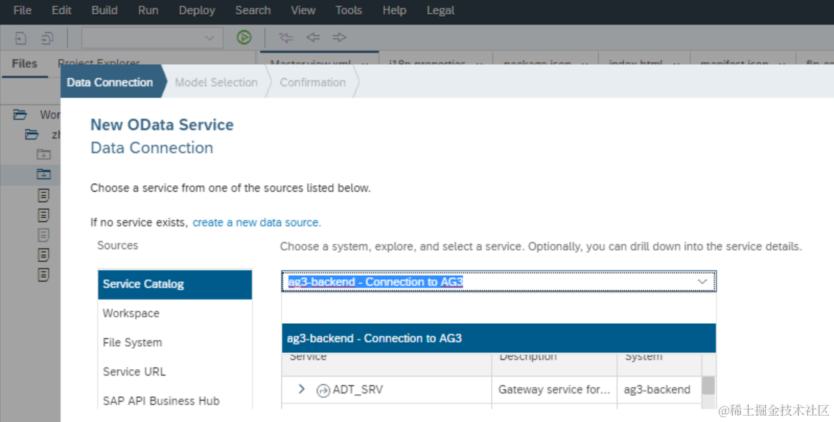 我们在SAP WebIDE里创建UI5应用时,可以从Service catalog里选择需要的OData服务,如下图所示: