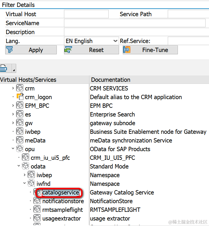 这个service catalog的实现位于ABAP后台SICF的位置:/sap/opu/odata/IWFND/CATALOGSERVICE