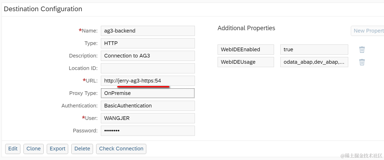 是我在SAP Cloud Platform的Destination标签页里维护的一个Destination: