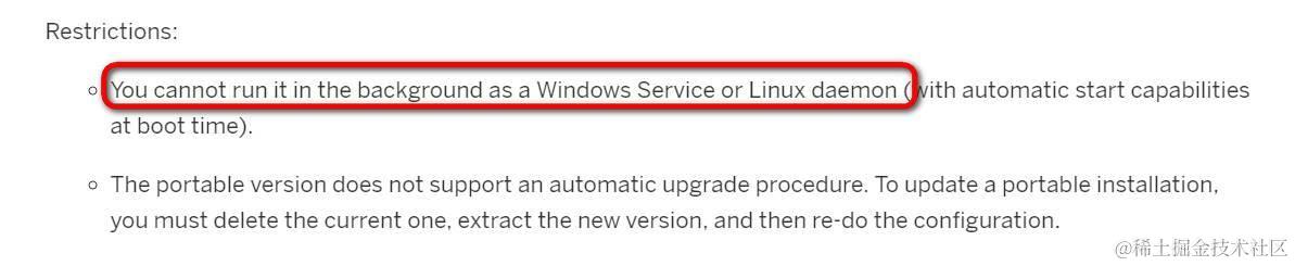 但我们的阿里云是Ubuntu,所以只有选择portable version,后者有一个限制:无法以守护进程方式运行。