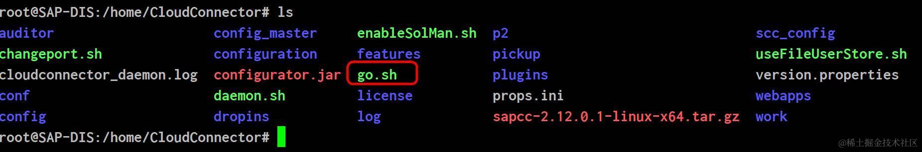 在阿里云上这个文件夹里有个go.sh, 执行后等待1分钟,SAP Cloud Connector就启动了。