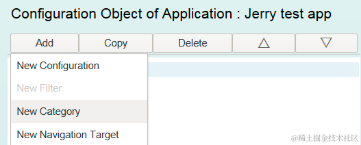 Create a new configuration which acts as a container for sub settings such as Filters and Categories: