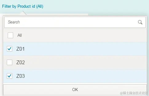 The response is used to render filter drop down list when hyperlink is clicked: