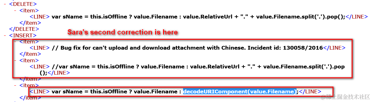 However, apart from this code change made by Sara, there are also lots of unrelated code or comment which are also included into the delta change area: