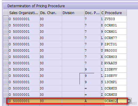 - In the customizing below, define the combination of Sales Organization Unit + distribition channel which will determine a pricing procedure: