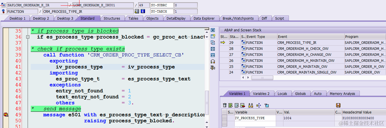 Fiori里创建task出现错误消息Contact your system administrator的处理 已注销 2021-04-25 46 阅读1分钟 当试图创建task时遇到如下error message: 逐一debug: 发现问题出自crm_order_maintain里: process type 1004设为blocked状态: 这个process type被设置成inactive了,将其改成active即可。 要获取更多Jerry的原创文章,请关注公众号"汪子熙":