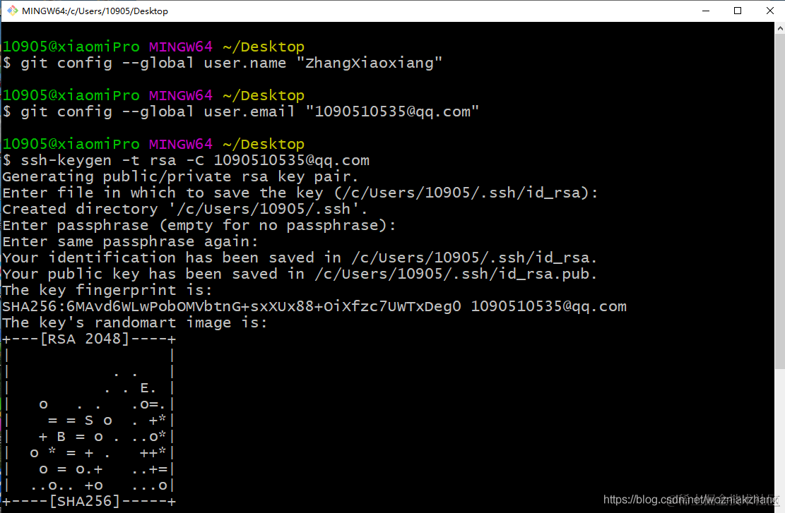 ssh-keygen -t rsa -C 1090510535@qq.com 一直回车(直到出现一个图形表示成功,此次本地已经生成ssh)