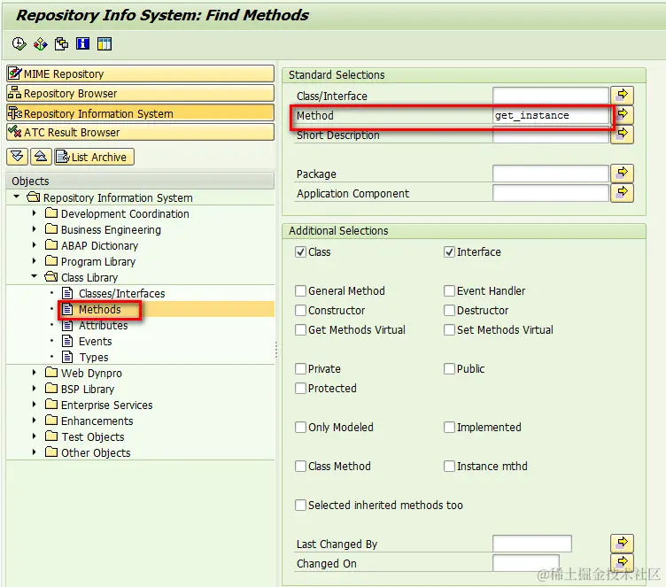 如何根据ABAP类的一个方法名称,反查出这个类的名称 已注销 2021-04-25 84 阅读1分钟 假设你想查找一个ABAP class, 但是你只记住了它的某个method name,想通过method name反查到ABAP class name。例如你想查看所有实现了get_instance的class. solution SE80, 得到结果: 要获取更多Jerry的原创文章,请关注公众号"汪子熙":