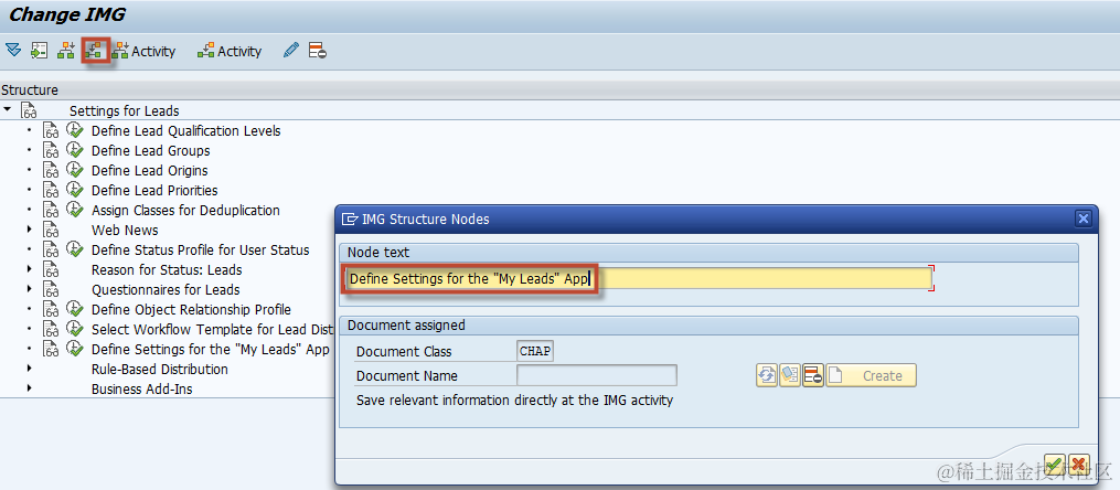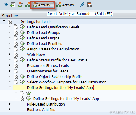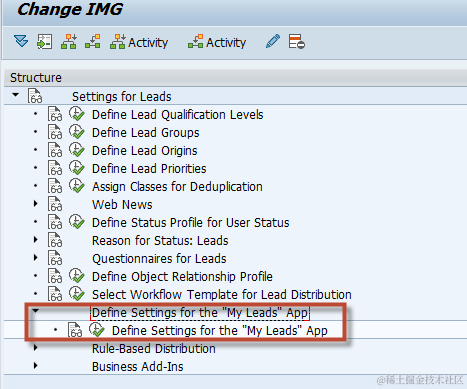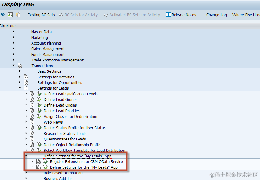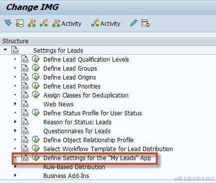 First, find the IMG structure(“Settings for Leads”) and add to Favorite. Then you can see “Settings for Leads” is shown in the Favorite list.