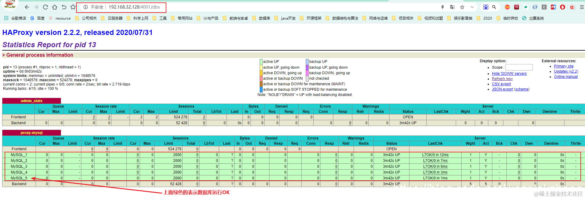 测试数据(成功后到数据库创建一个用户CREATE USER 'haproxy'@'%' IDENTIFIED BY '';),待会儿后面负载均衡会用到