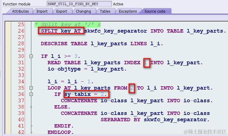 这个FM用的传统的做法,把三个k split到一个internal table里,然后READ TABLE INDEX 1,2,3的方式分别取出每个key。用了42行代码。