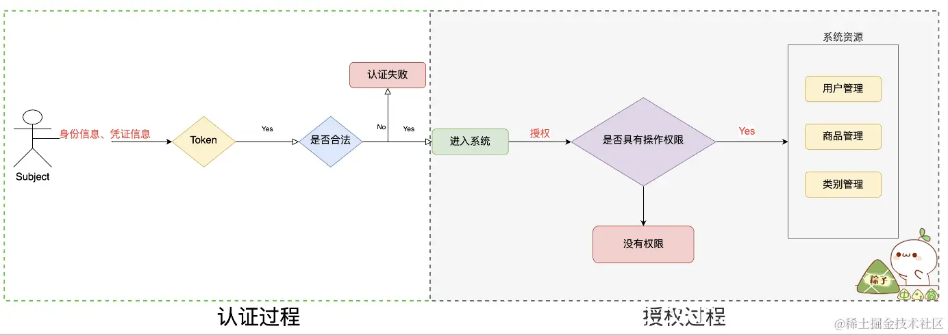 权限管理包括用户**身份认证和授权**两部分,简称认证授权。对于需要访问控制的资源用户首先经过身份认证,认证通过后用户具有该资源的访问权限方可访问。