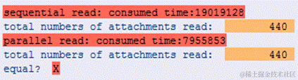 AG3上取440个attachment,一次用串行的方式执行,另一次分成4个线程分别执行,每个线程里仍然call的未优化的代码。用代码比较确保两次执行返回的结果完全一致。