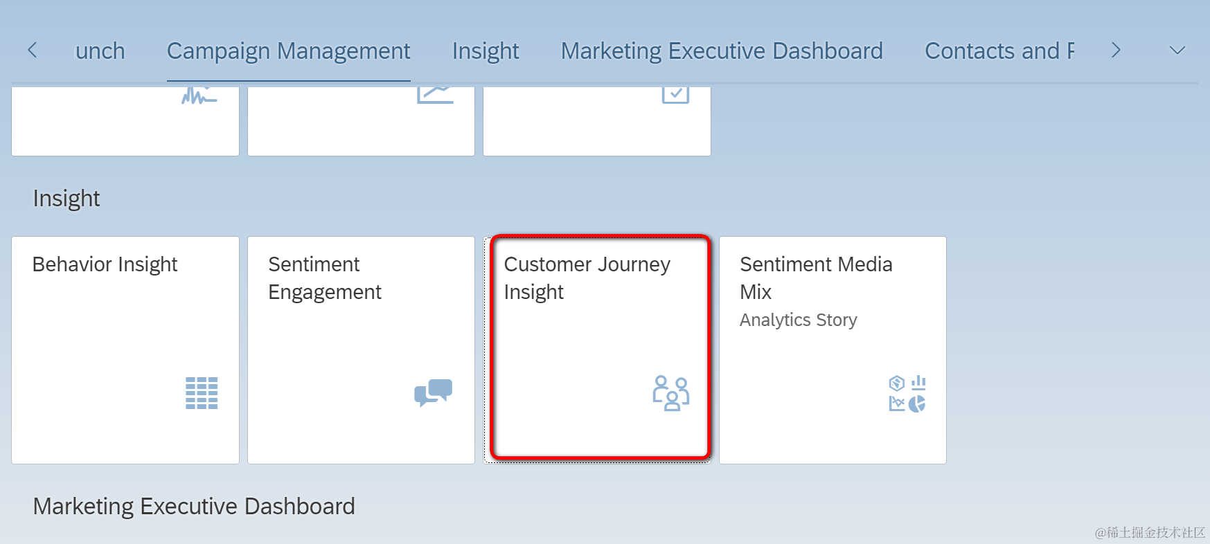 Using the Analytics and Reports Gallery, marketing experts can run analytics stories, and reports based on predefined CDS views. For more information, see section Analytics.