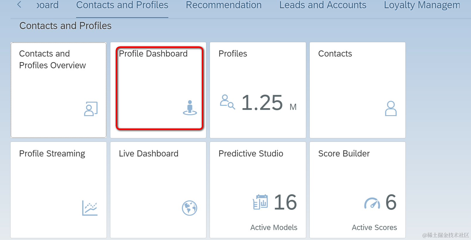 Using the Profile Dashboard, the marketing expert can analyze interest and trends of all contacts.