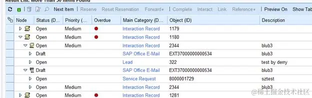 对于email来说貌似他没有直接和后续创建的transaction关联起来,transaction都是与interaction record关联在一起的。比如我通过interact一个email,然后建了一个lead,最后在inbox result里面是这个样子的。