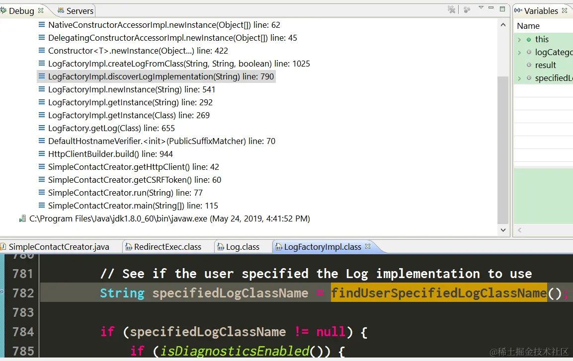 在运行时,这个SimpleLog的实现是如何被HttpClient检测出来的?