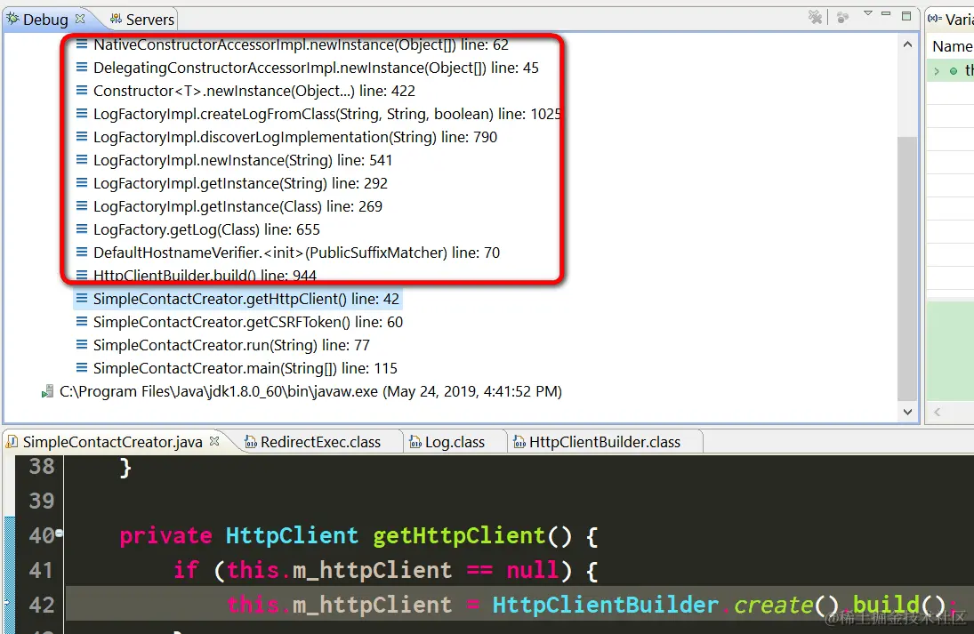 当我调用HttpClientBuilder.create().build()的时候,log检测就发生了: