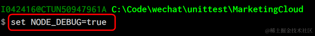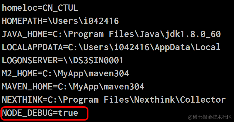 起初我用set NODE_DEBUG=true, 发现无法成功启用: