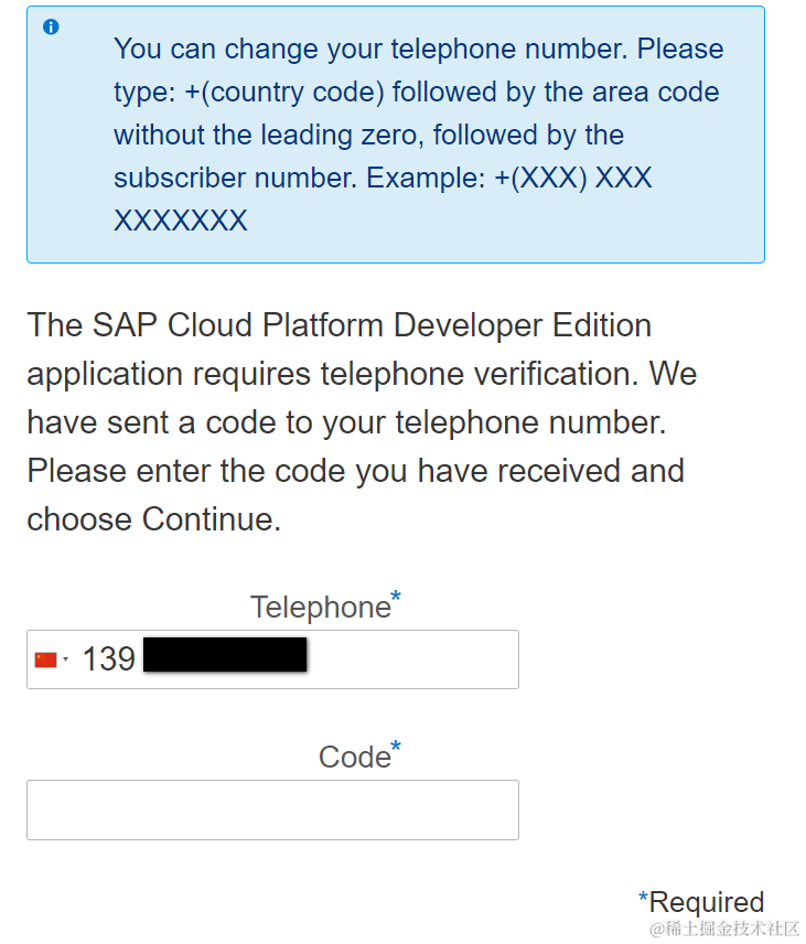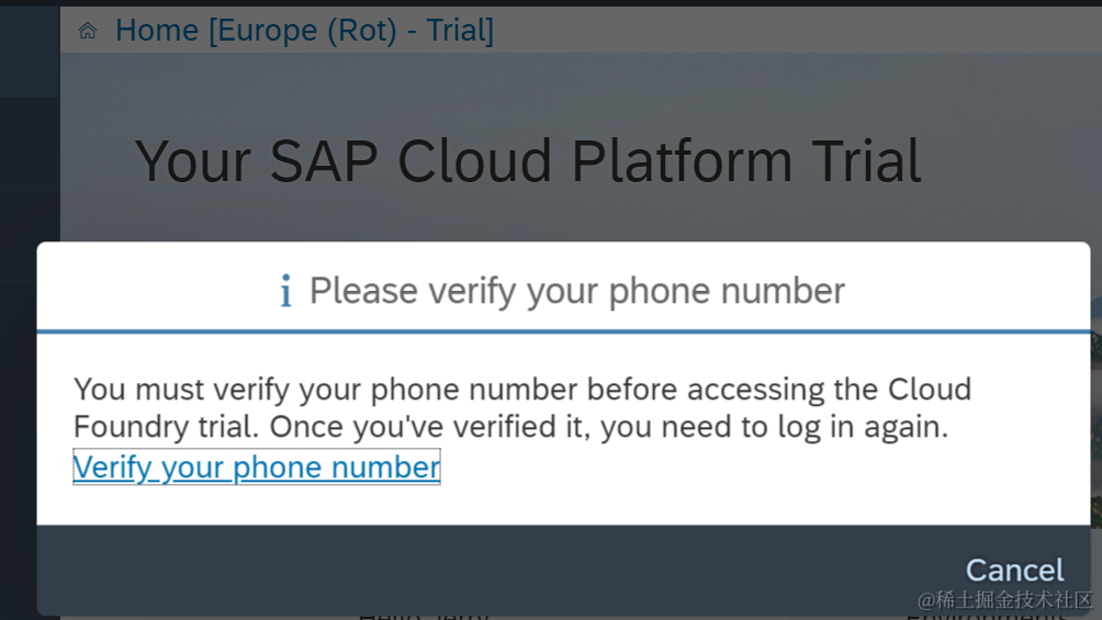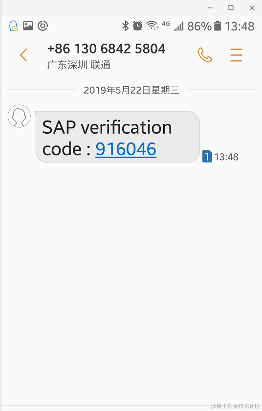 SAP云平台的试用账号手机验证 已注销 2021-04-25 100 阅读1分钟 今天(2019年5月22日)登录SAP云平台的控制台后, 收到手机号码验证的提示: 中国的区号是+86: 把SAP发过来的verification code填入验证框即可。 要获取更多Jerry的原创文章,请关注公众号"汪子熙":