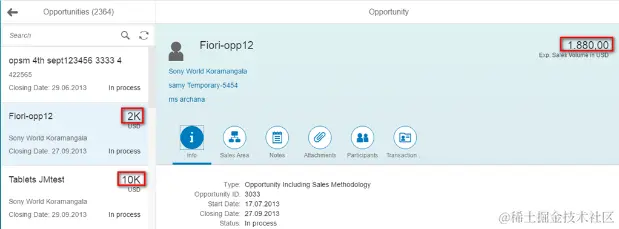 You have observed the following behavior: the sales volume is displayed in detail view with 1880 USD, while in master list, it is displayed as 2K for short. Why?
