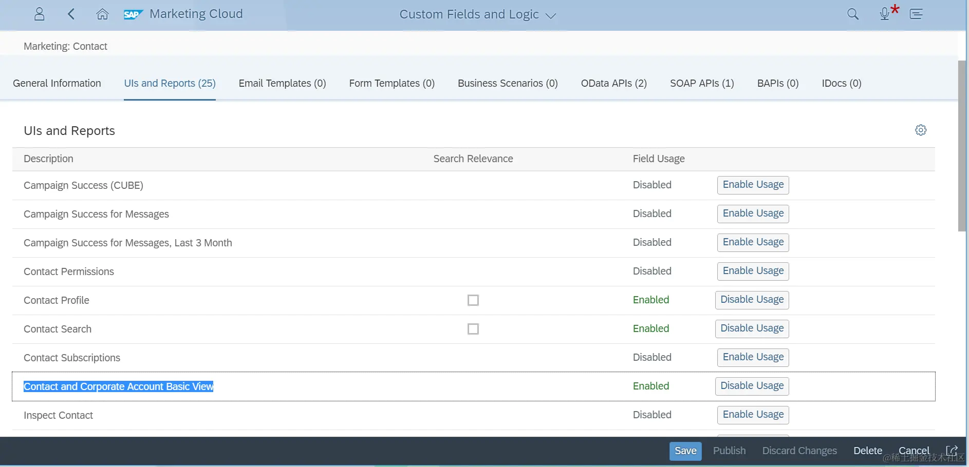 接下来需要为特定的UI enable这个字段的显示。在标签页UIs and Reports里,在对应的UI记录后点击按钮"Enable Usage":