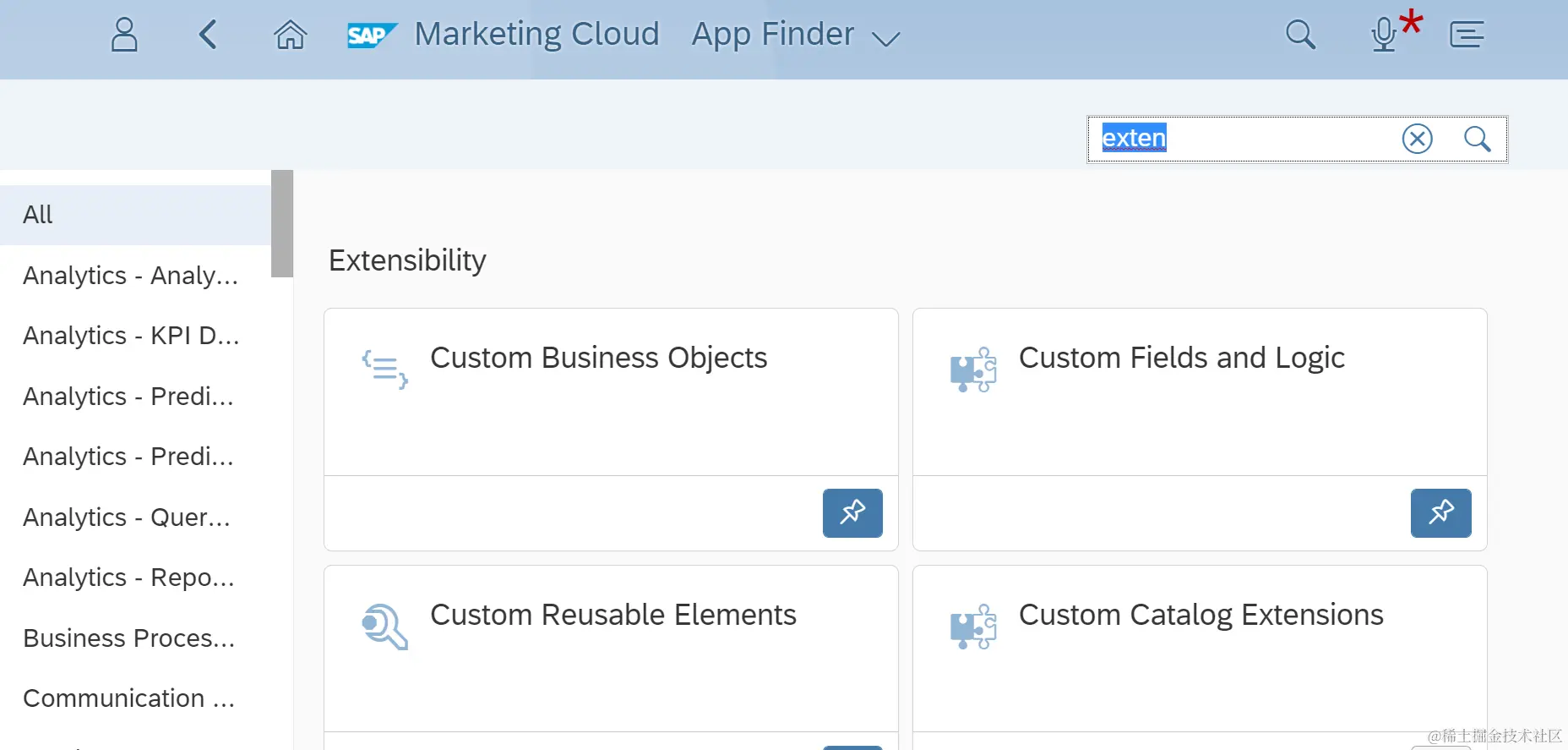 首先在Marketing Cloud里找到创建扩展字段的tile入口,搜索关键字extension: