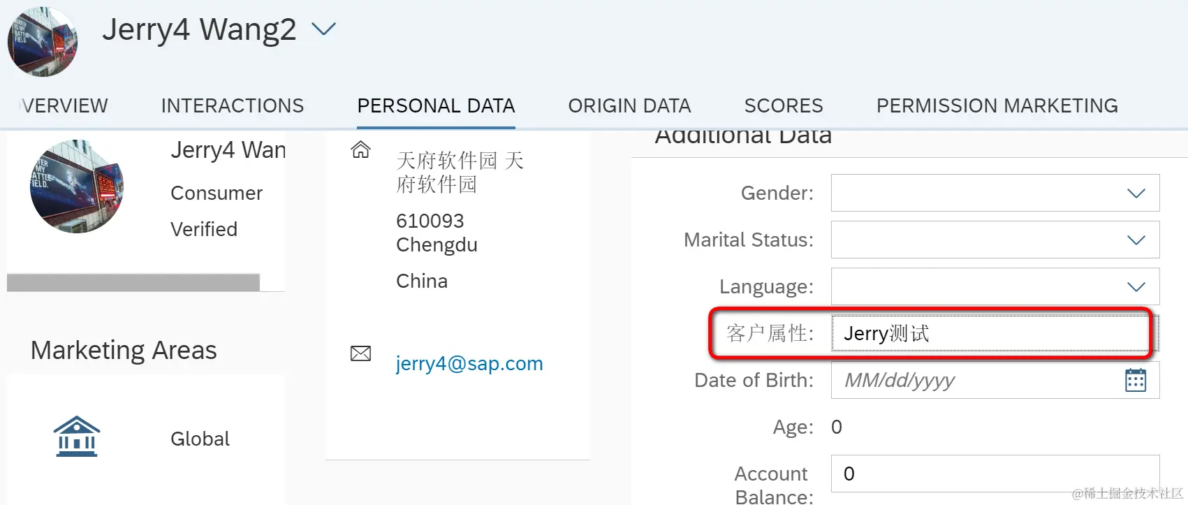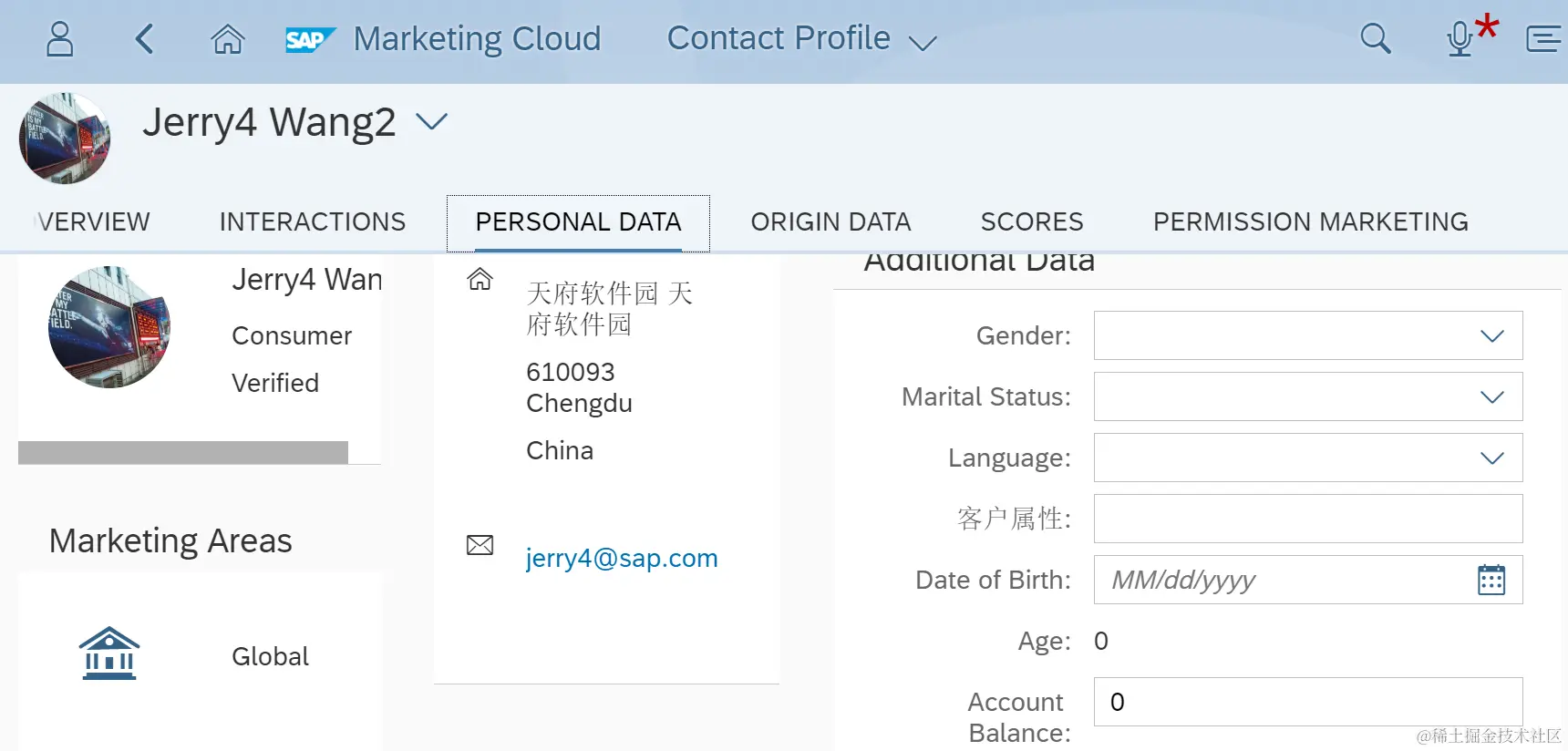 Marketing Cloud里的contact主数据,创建成功后也不是所有字段都能够被修改。在Personal data区域的字段是可以被修改的。