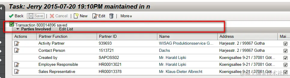 Also maintain Sales Representative in “Parties Involved”.