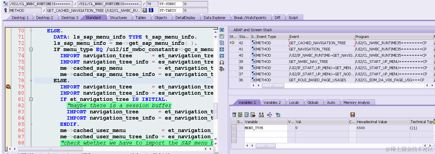 在line 79处设置断点。重新launch UI,断点触发,使用debugger shift+F12直接跳至方法末尾: