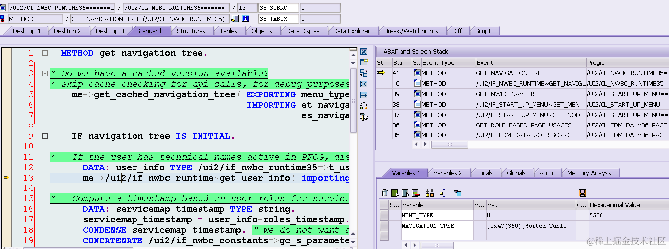 由于step1直接用debugger跳过,因此cached的navigation tree为initial,因此进入IF 分支line 13的执行:
