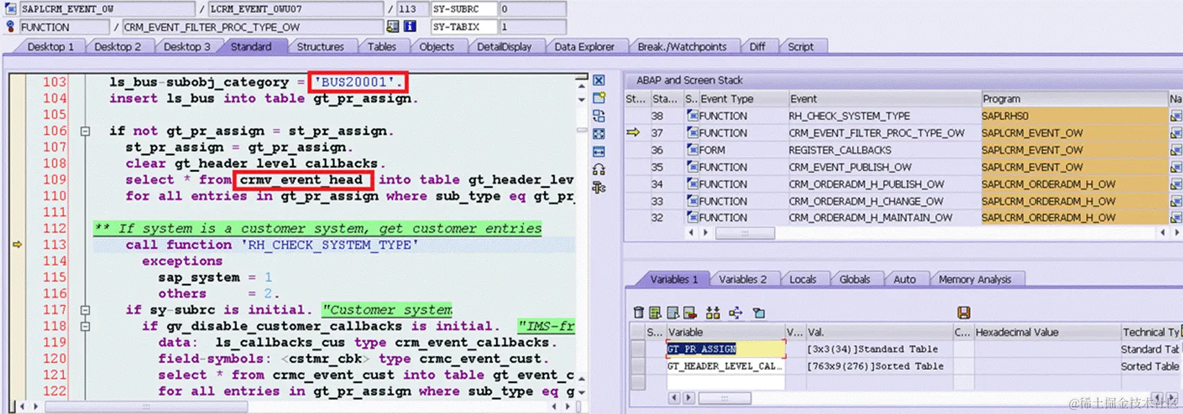 internal table gt_allowed_callbacks_hdr 存放了当前系统注册的所有call back信息。系统理一次进入CRM_EVENT_PUBLISH_OW时,该内表是空的,通过subroutine register_callbacks 初始化。