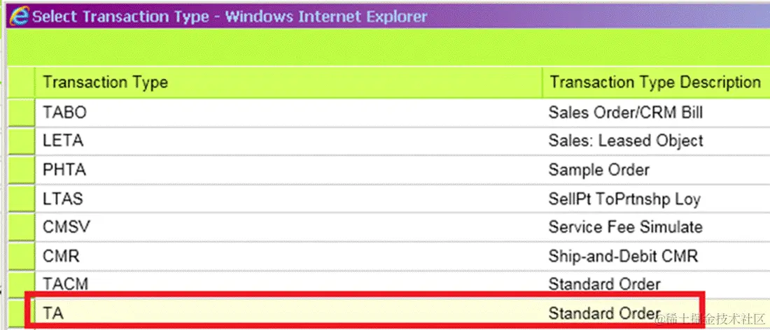 通过UI创建一个transaction type为TA的sales order为例: