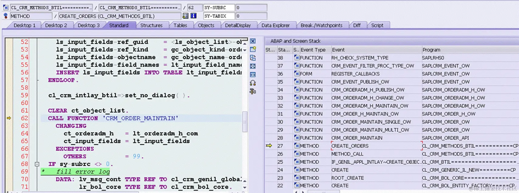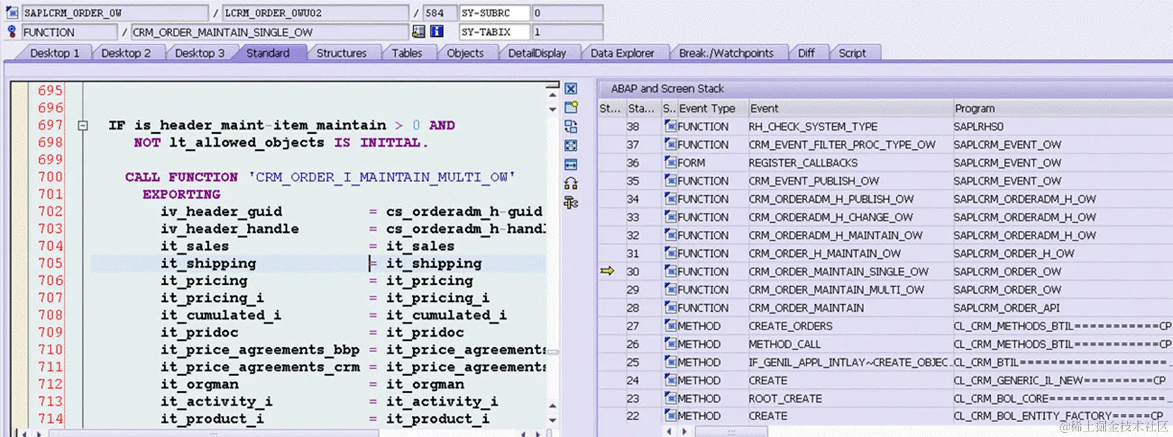 这个调用堆栈, 看来是由CRM_OREDER_MAINTAIN调到的