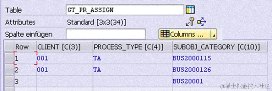 gt_pr_assign包含两个从SPRO里维护的category 再加上一个generic的BUS20001: