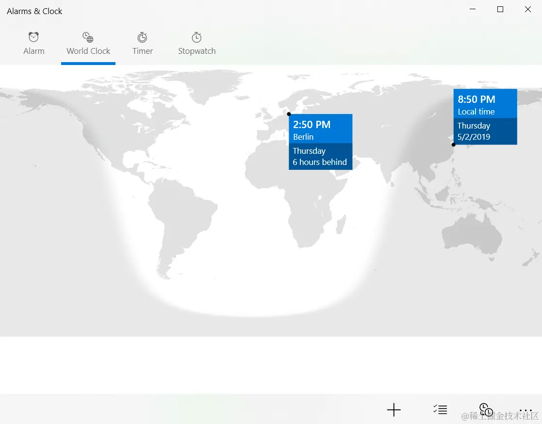 推荐windows10里自带的世界时钟,非常好用 已注销 2021-04-25 600 阅读1分钟 作为一个旅行和出差狗,经常在世界各地飞,不可避免的需要计算时区,时差等。在网上兜了一圈,发现windows10自带的世界时钟是最好用的。 入口: 点击World Clock: 点右下角的+号图标,添加新的地区: 我添加了柏林Berlin和Orlando,是不是很方便? 要获取更多Jerry的原创文章,请关注公众号"汪子熙":