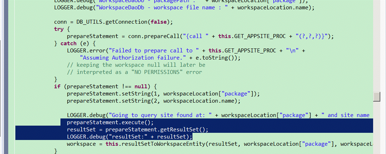 And workspace DAO just issue the query to HANA database via call getResultSet():