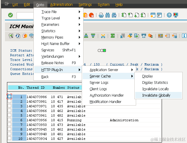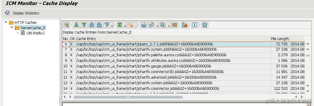 到application server 上使用tcode SMICM查看server side cache: