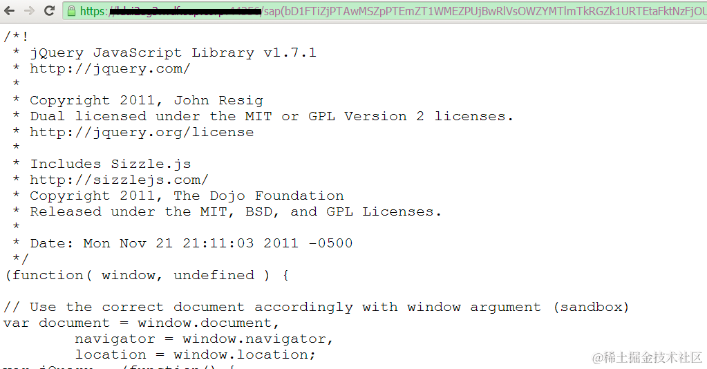 将该url直接在浏览器里访问,能观察到javascript 文件的内容:
