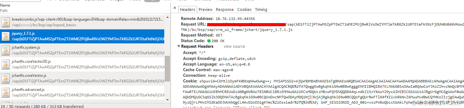 在Chrome F12 development tool里观察到对server side javascript的load: