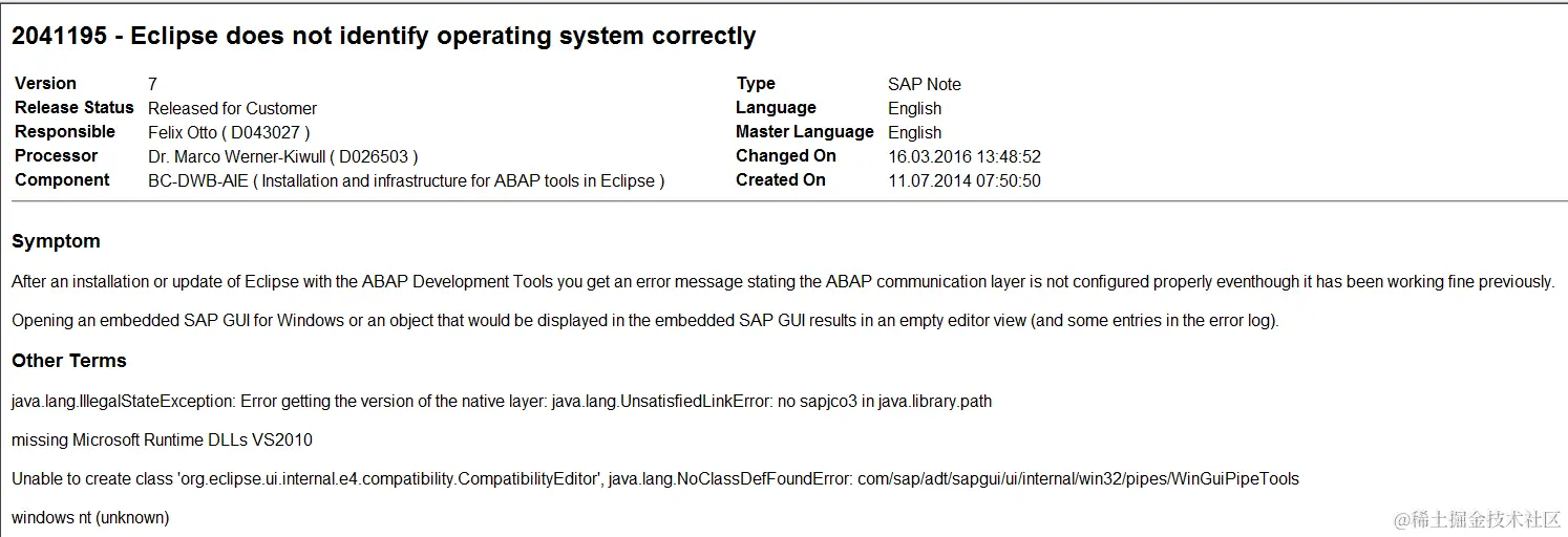 solution could be found in note 2041195 - Eclipse does not identify operating system correctly.