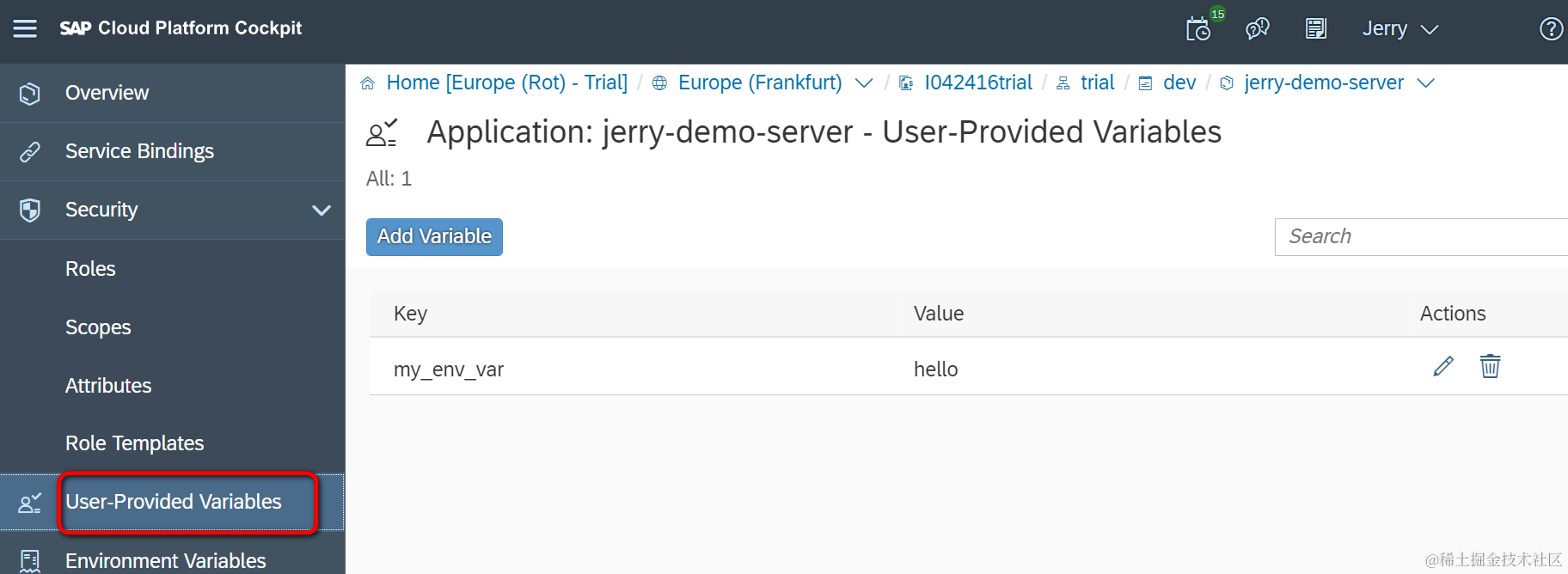 Manifest.yml文件里定义一个环境变量,名称为my_env_var, 值为hello: