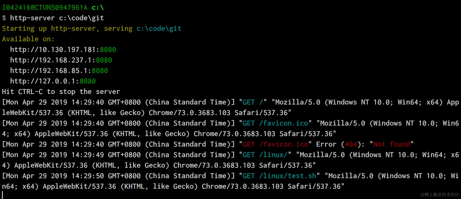 安装完毕后,执行命令http-server后面加上文件夹路径。