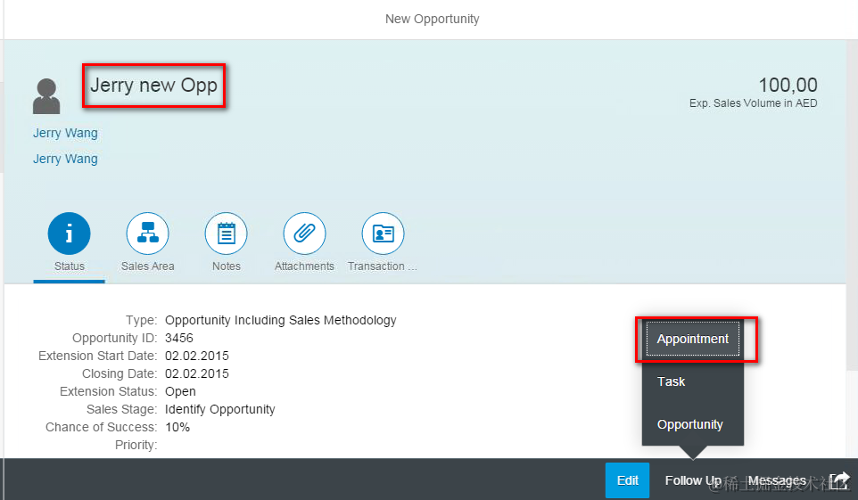 In Opportunity we can create followup Appointment via this button, and the title of source opportunity will be used as part of url as an argument for cross application navigation service.
